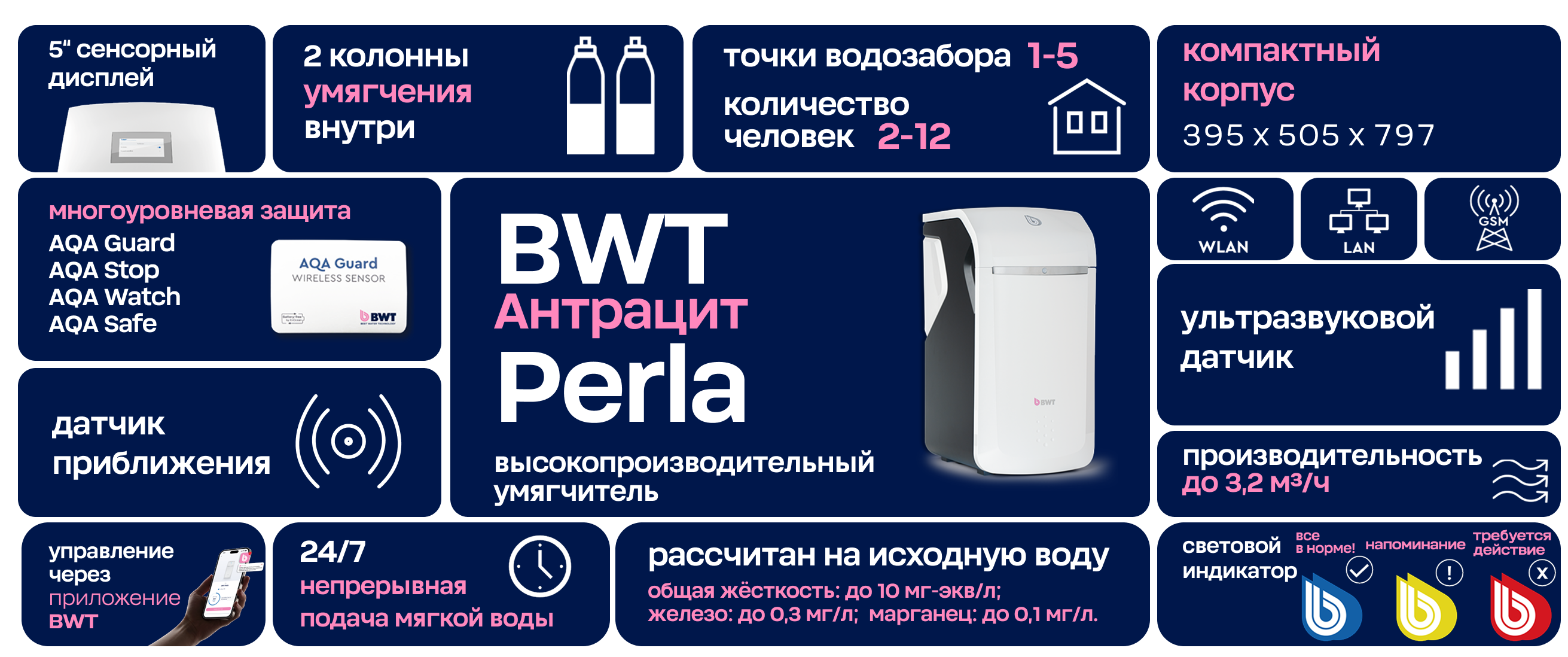 BWT Perla рассчитан на воду со следующими параметрами: